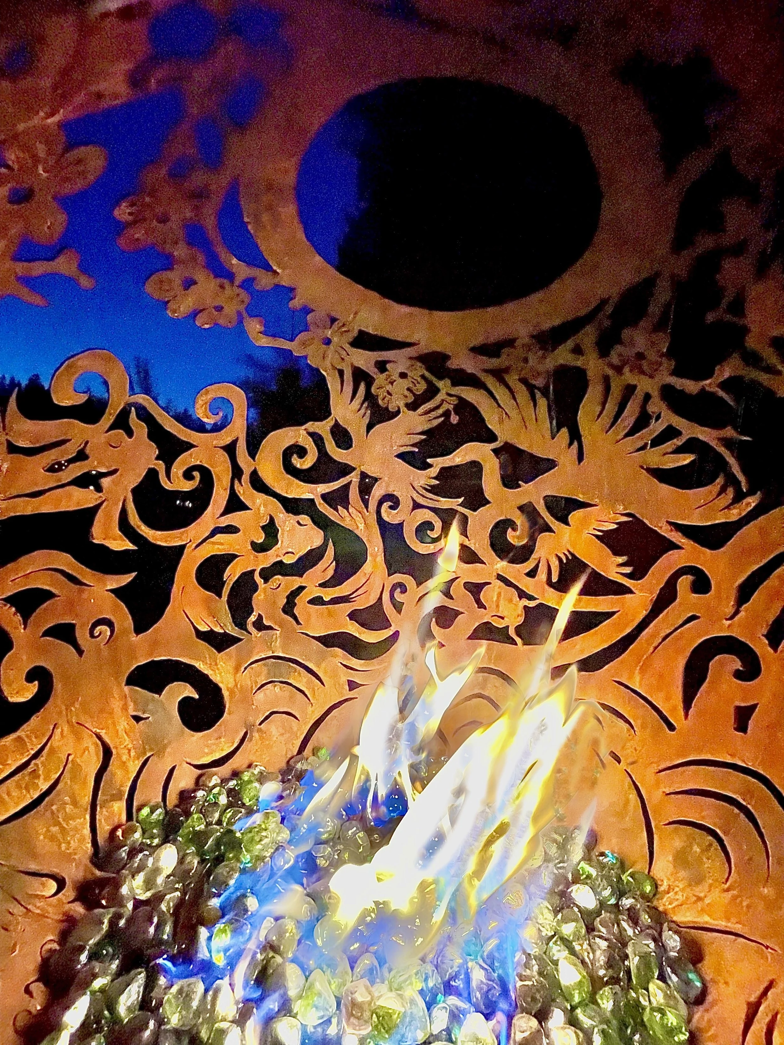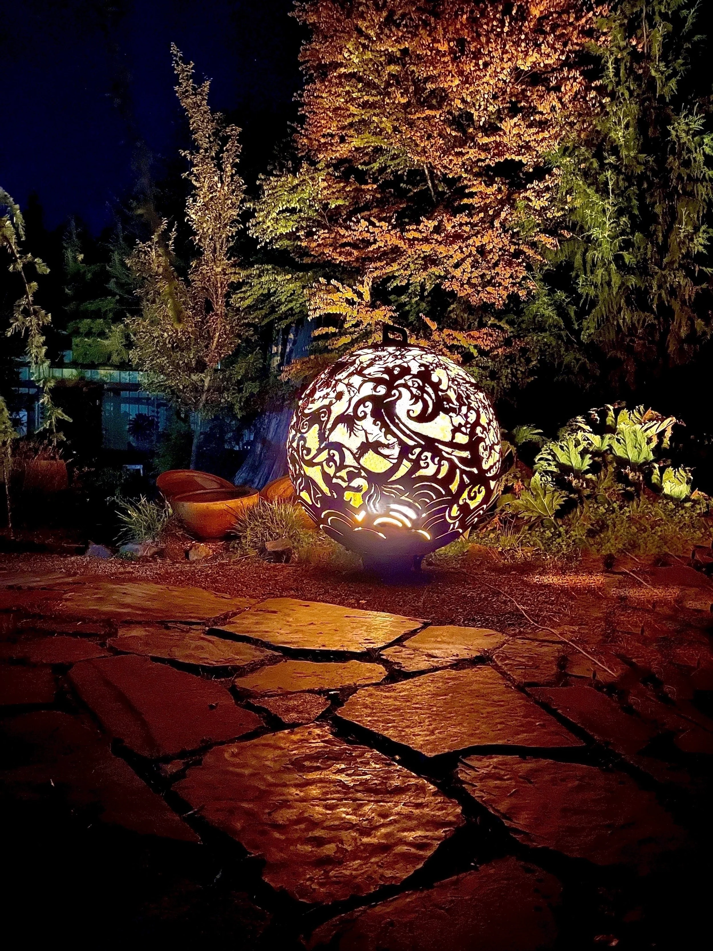 Jen, this text block goes at the top of the electric lighting section. …… Info here about LED flicker flame lights, white landscape lights and colored lights goes here. Bla Bla Bla. … Our custom electric light bases can be used with your fireball all of the time or when you are in the mood for a flame- free illuminated garden sculpture. The lights inside our electric light bases are customizable and can be set to change color, brightness with ease.