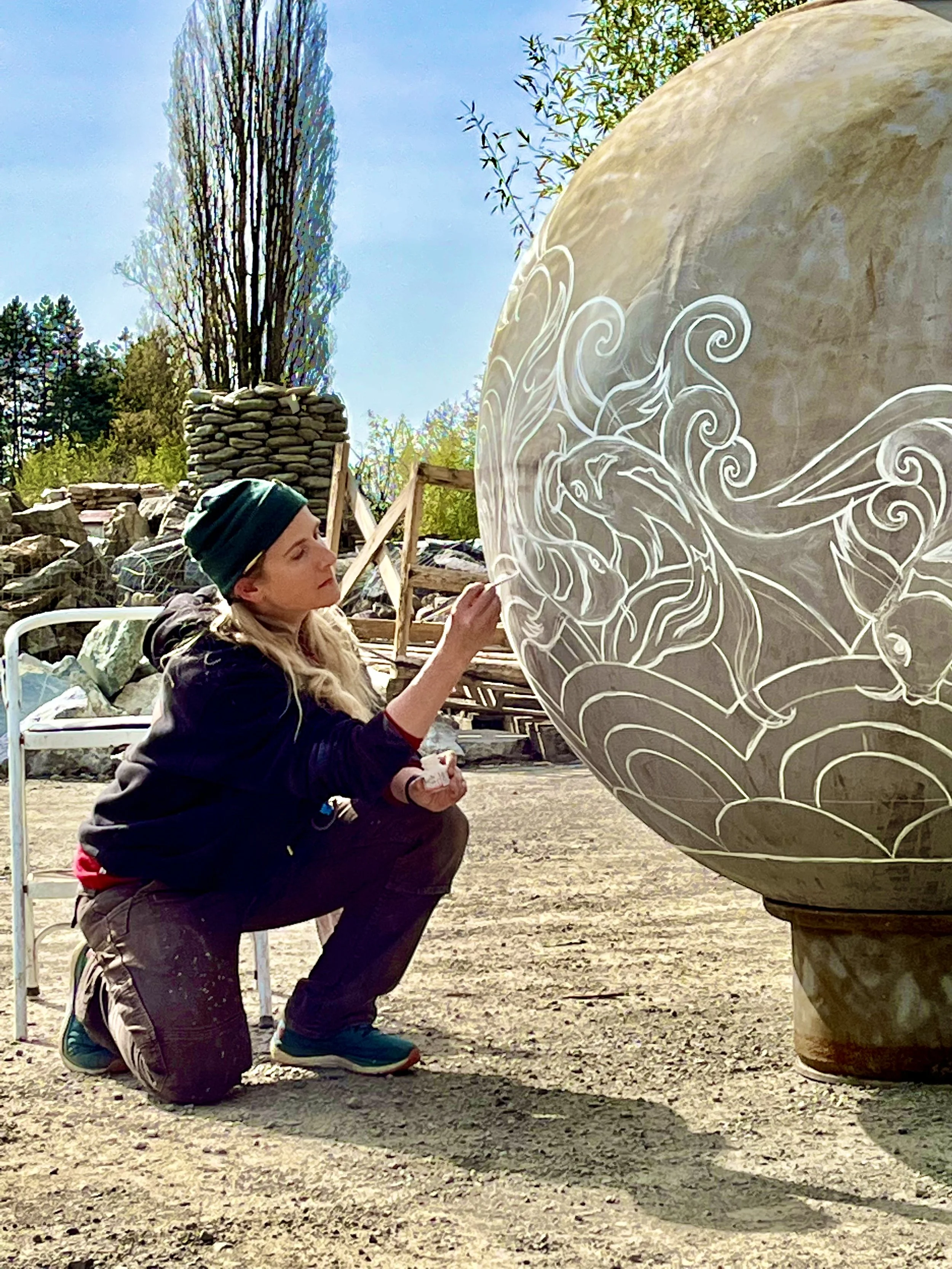 I design by hand directly on the buoy with chalk and ink. Stencils are never used to assure that each Fireball is unique.
