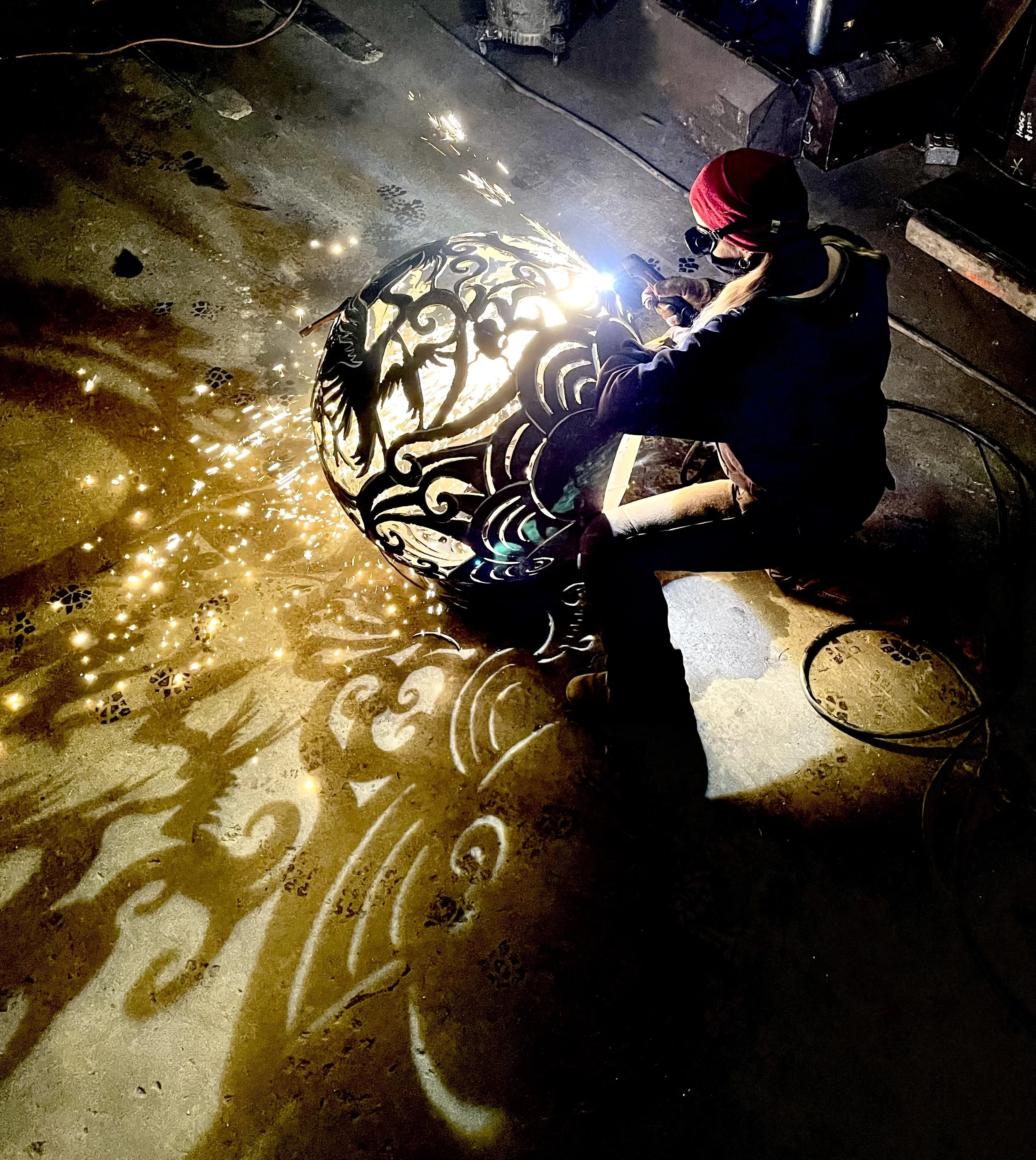 Julia plasma cutting an extra large 58 inch Fireball. So much fun!
